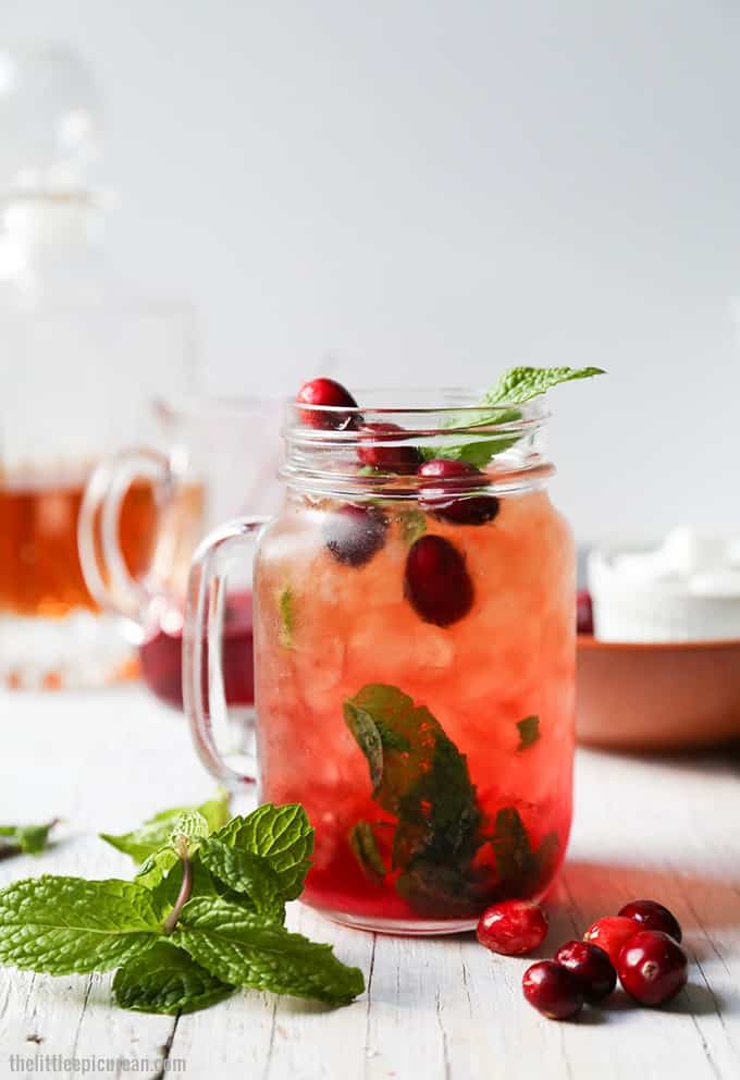 - Garnish with fresh mint sprigs and a few fresh cranberries. Serve immediately with a straw or stirrer.