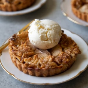 A quick and easy way to make apple pie! Mini apple tarts are made with store-bought pie dough and filled with cinnamon spiced apple slices. Serve these cozy individual-sized tarts with a scoop of vanilla ice cream!