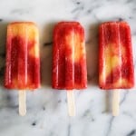Pour strawberry puree into molds, filling mold half way. Next, slowly pour pineapple puree into mold. Since the pineapple puree is more dense than the strawberry, it will cause that swirling/marble effect.